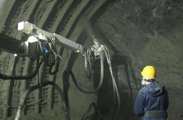 在鐵路公路隧道、深基坑和道路邊坡防護(hù)等工程施工中,廣泛采用噴射混凝土的支護(hù)方法。傳統(tǒng)的人工噴射混凝土法,勞動強(qiáng)度高、效率低、粉塵大,也存在噴射計量不均、噴射速度不快、噴射成形不穩(wěn)等問題,影響施工速度和施工質(zhì)量。